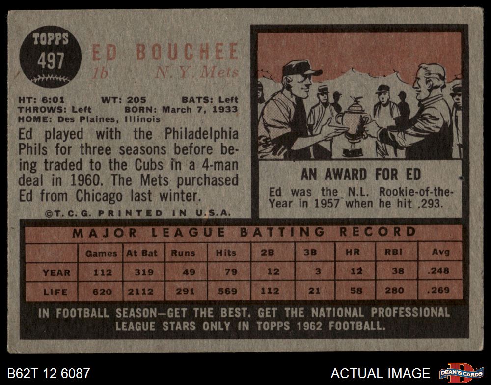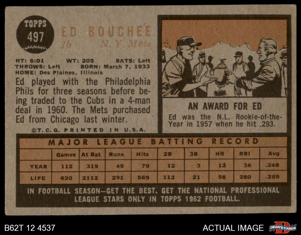 1962 Topps #497 Ed Bouchee 2 - GOOD