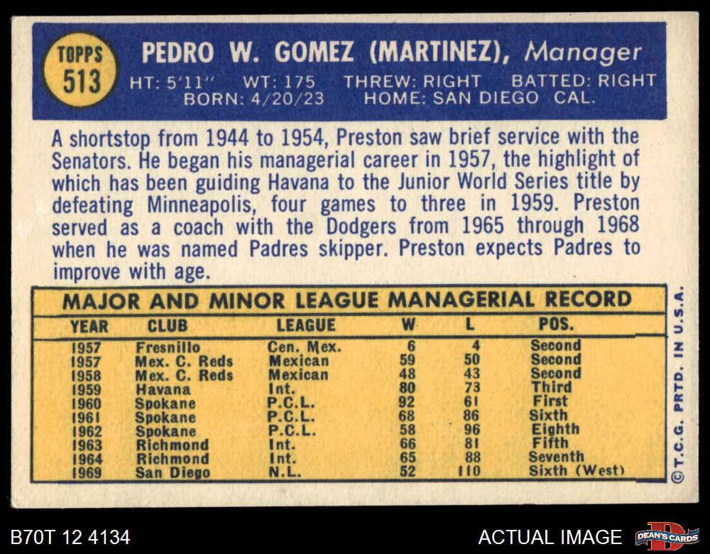 1970 Topps #513 Preston Gomez