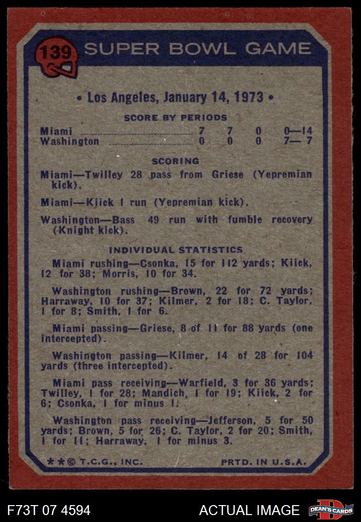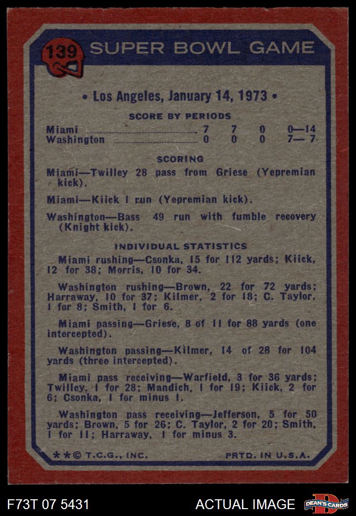1973 Topps #139 Super Bowl VII 6 - EX/MT