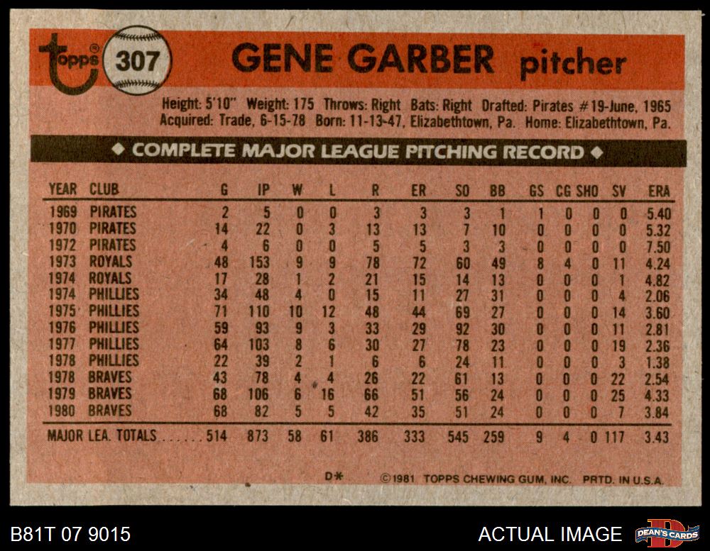 1981 Topps #307 Gene Garber 4 - VG/EX
