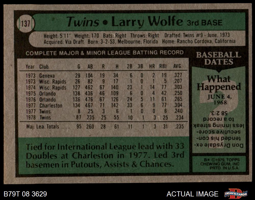 1979 Topps #137 Larry Wolfe 6 - EX/MT