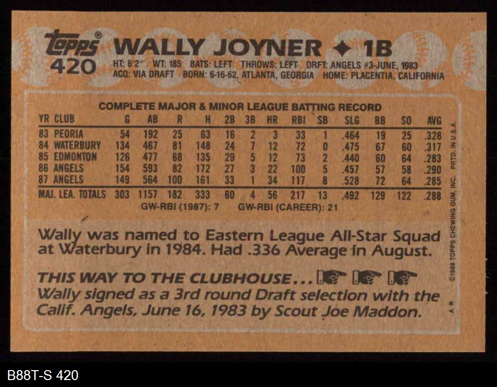 1988 Topps #420 Wally Joyner 8 - NM/MT