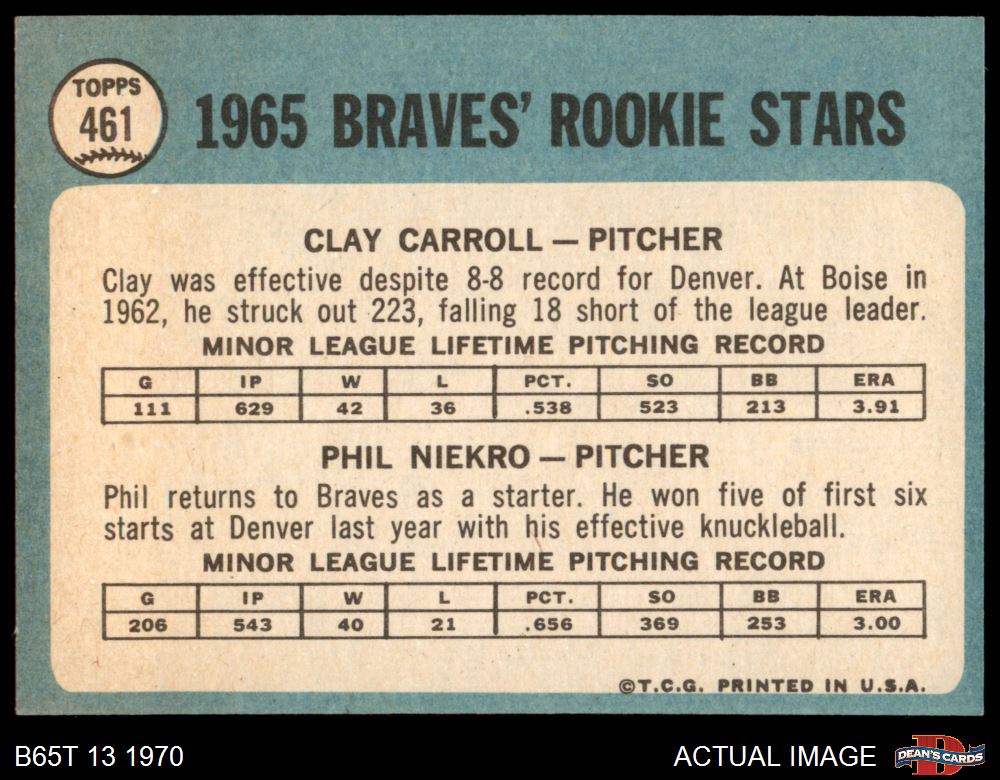 1965 Topps #461 - Phil Niekro / Clay Carroll Braves Rookies 4 - VG/EX