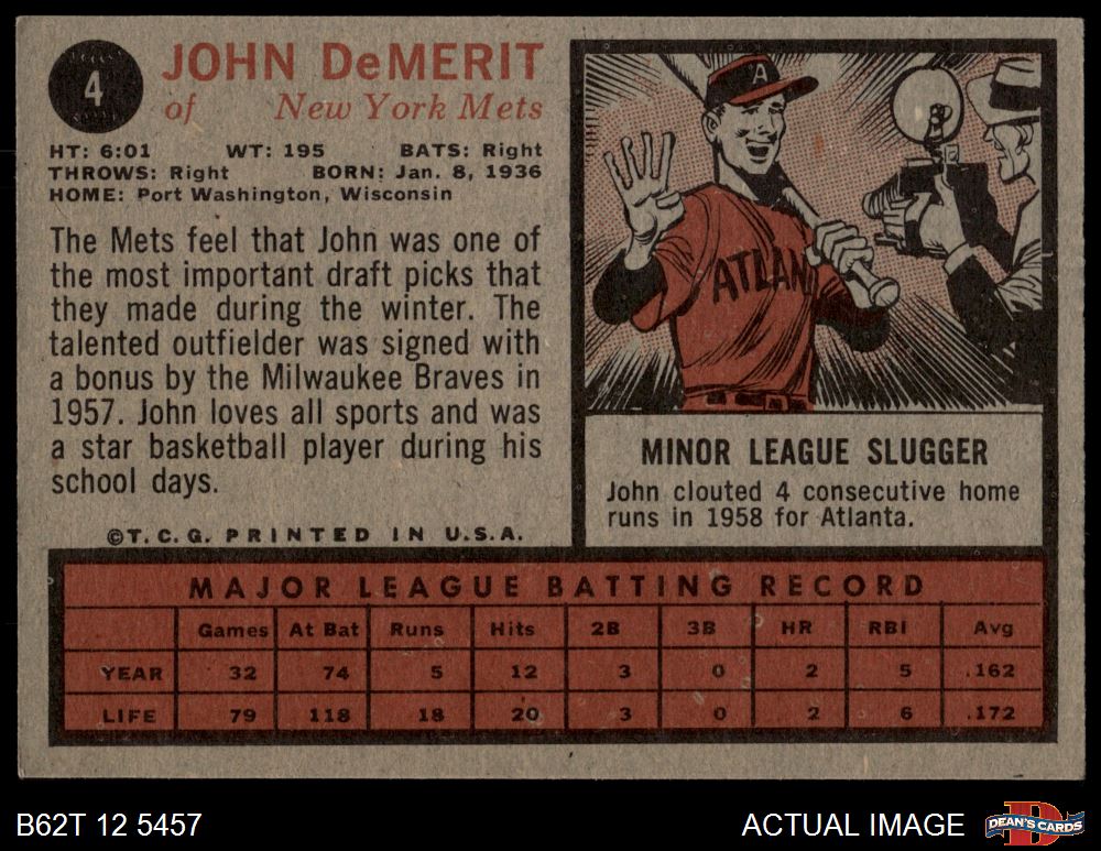 1962 Topps #4 John DeMerit 3.5 - VG+