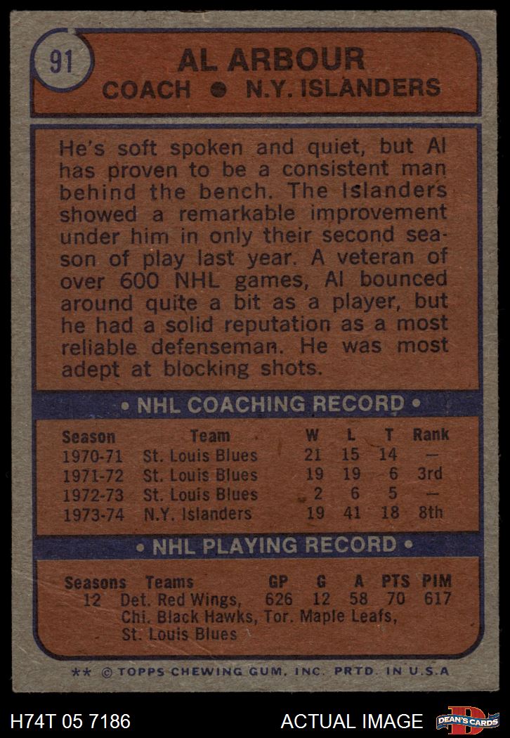 1974 Topps #91 Al Arbour 4 - VG/EX