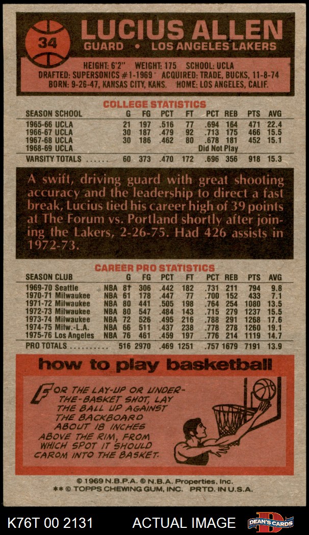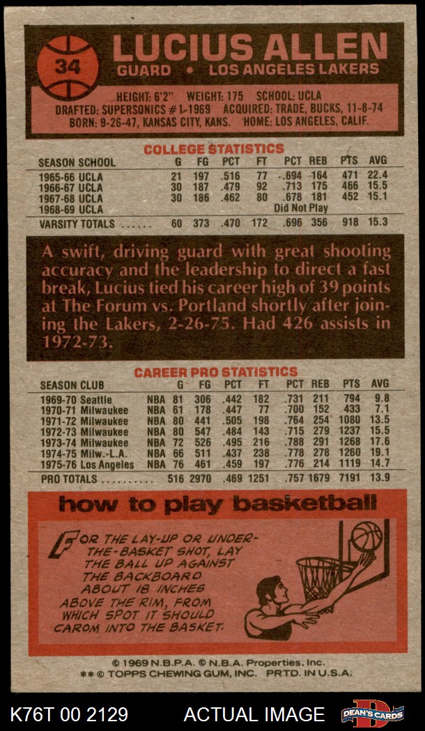 1976 Topps #34 Lucius Allen
