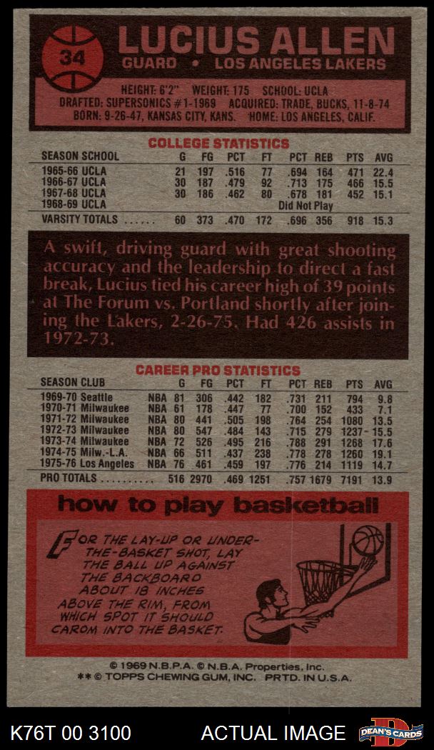 1976 Topps #34 Lucius Allen 6 - EX/MT