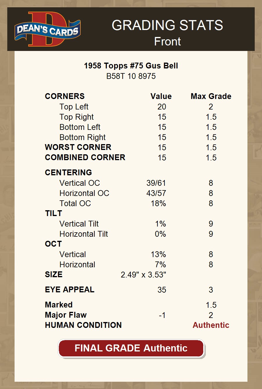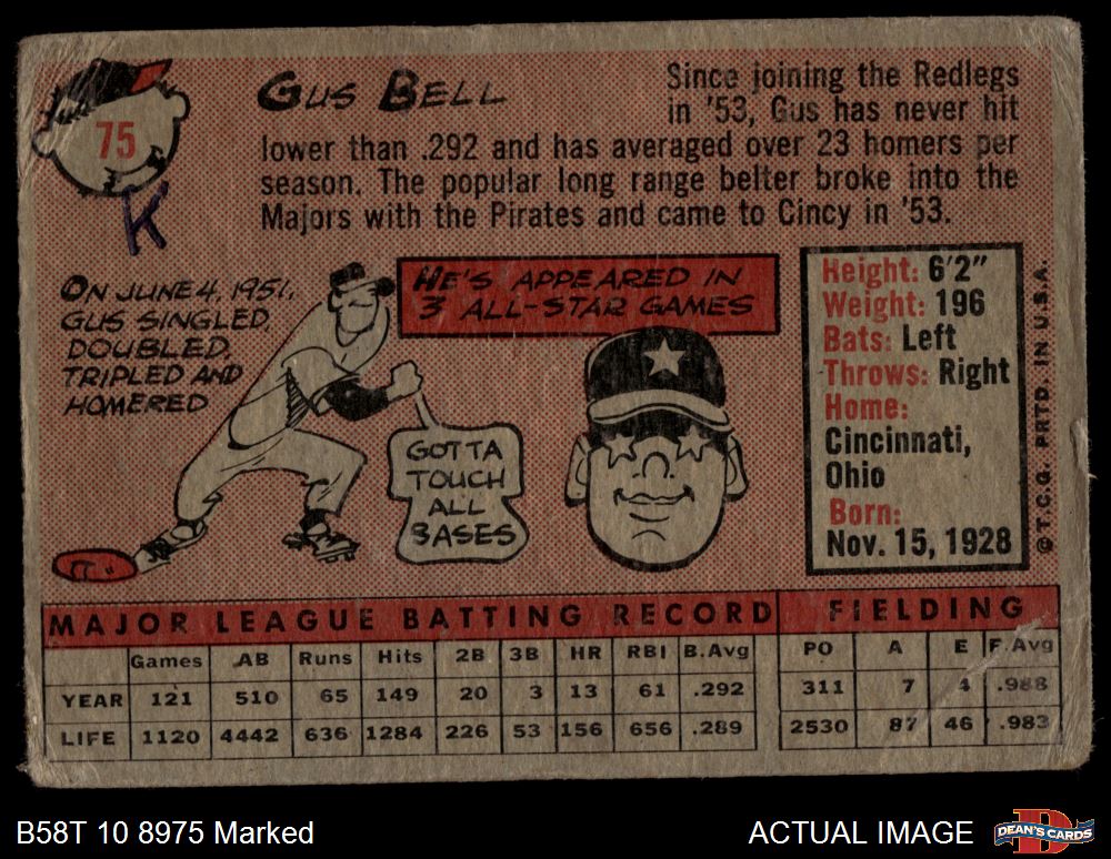 1958 Topps #75 Gus Bell AUTHENTIC
