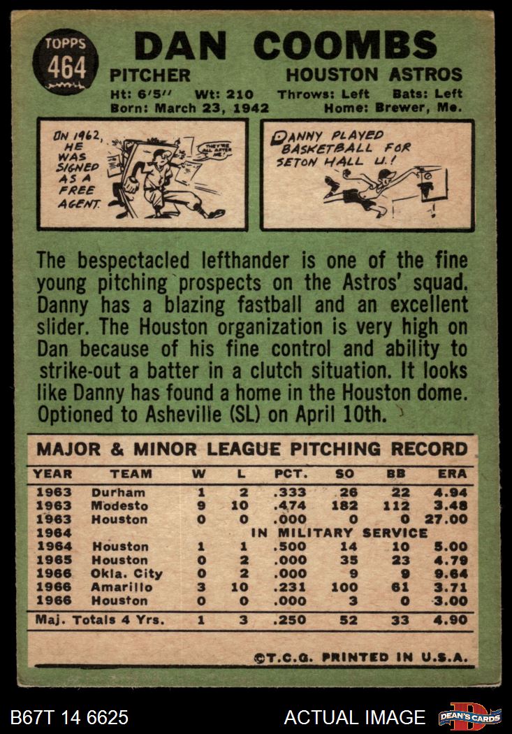 1967 Topps #464 Dan Coombs