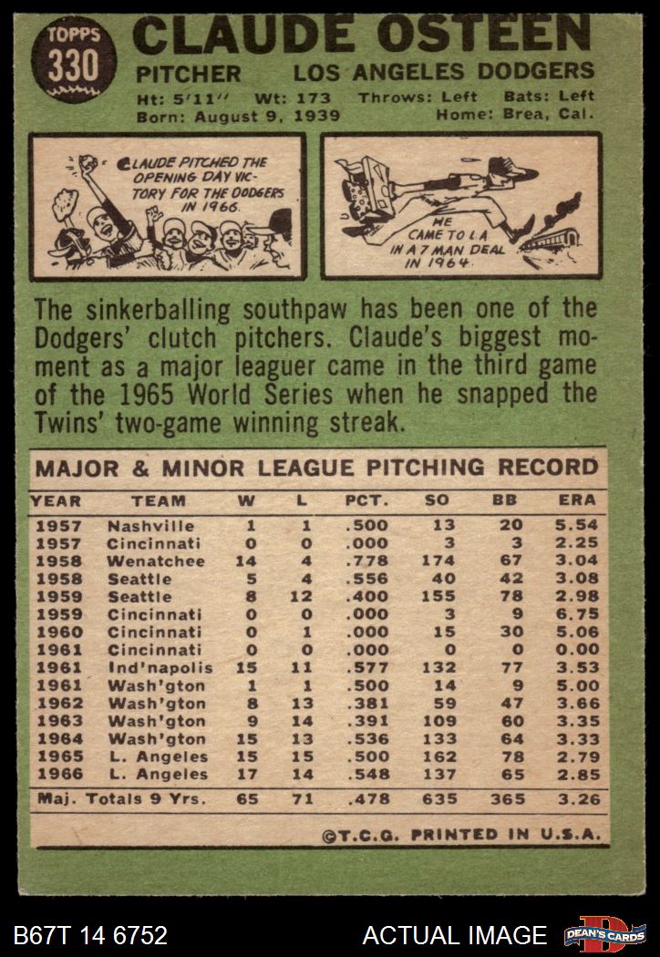 1967 Topps #330 Claude Osteen 4 - VG/EX