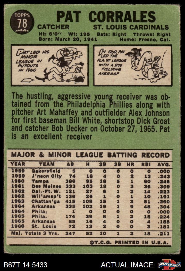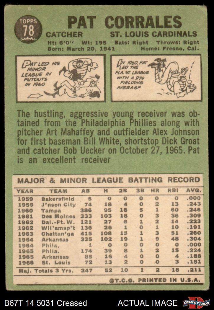 1967 Topps #78 Pat Corrales 2 - GOOD