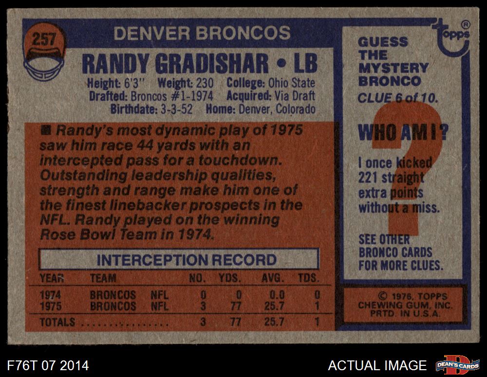1976 Topps #257 Randy Gradishar 4 - VG/EX