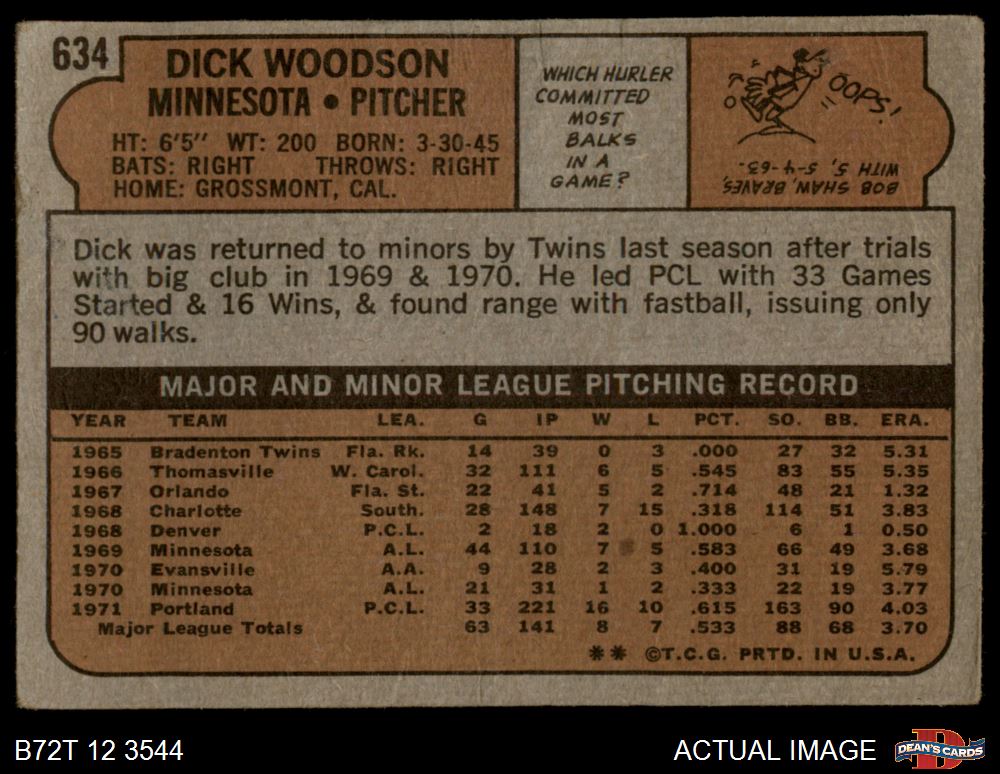 1972 Topps #634 Dick Woodson 1 - POOR
