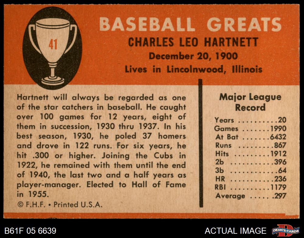 1961 Fleer #41 Gabby Hartnett 6.5 - EX/MT+