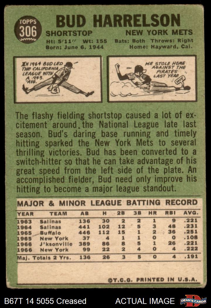 1967 Topps #306 Bud Harrelson 1.5 - FAIR