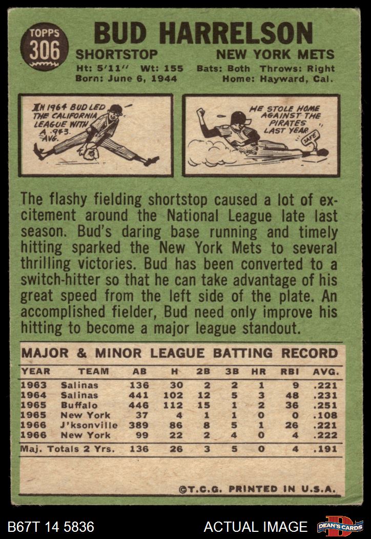 1967 Topps #306 Bud Harrelson