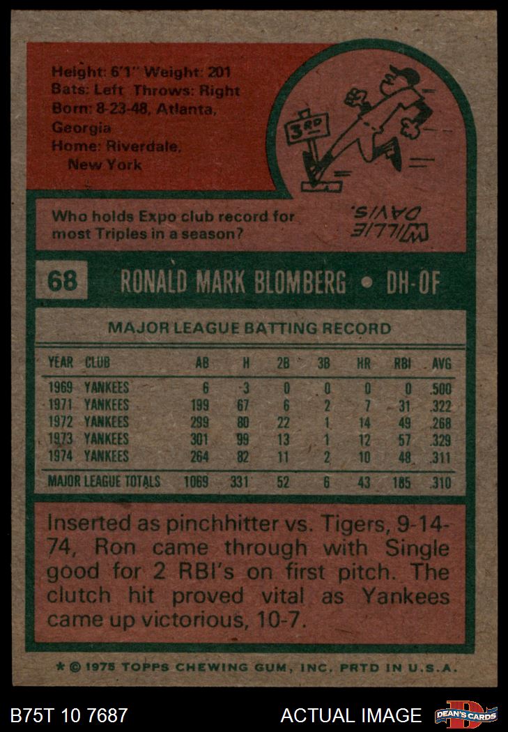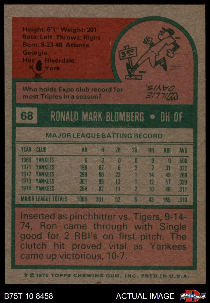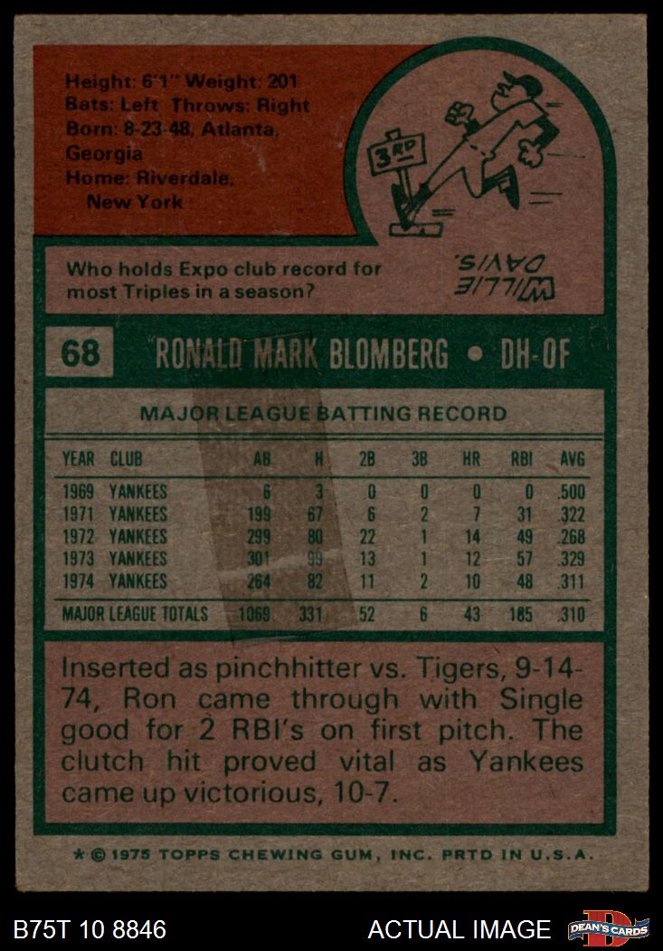 1975 Topps #68 Ron Blomberg