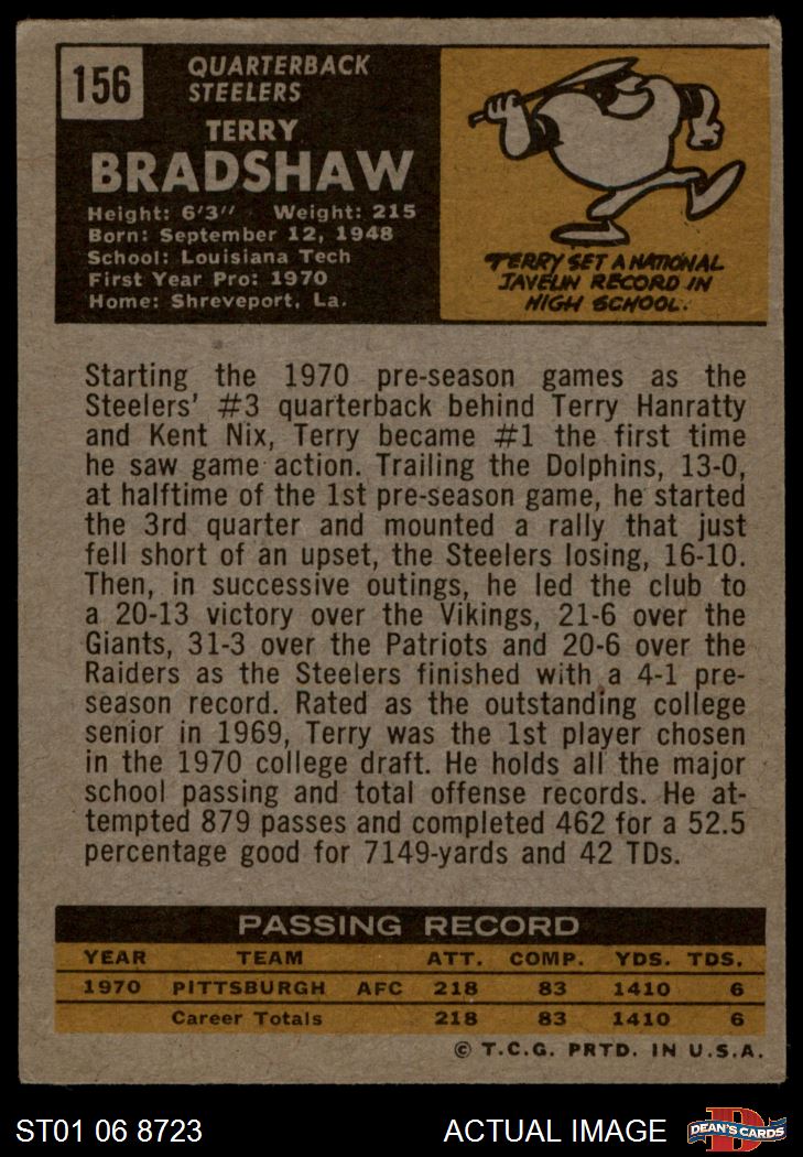 1971 Topps #156 Terry Bradshaw 3 - VG