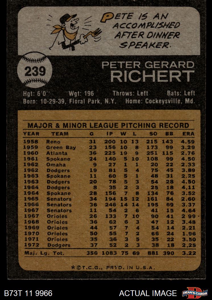 1973 Topps #239 Pete Richert 6 - EX/MT
