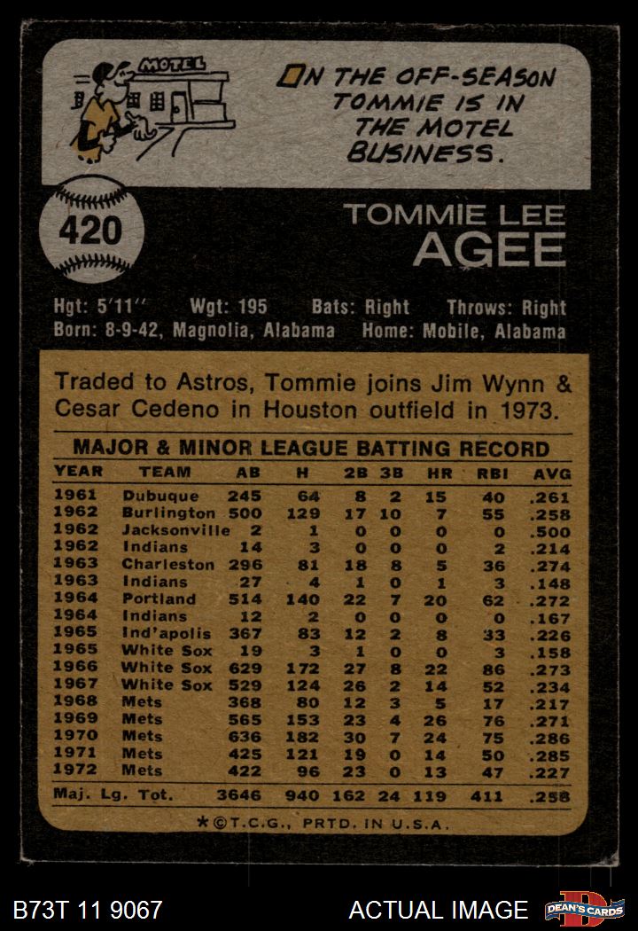 1973 Topps #420 Tommie Agee