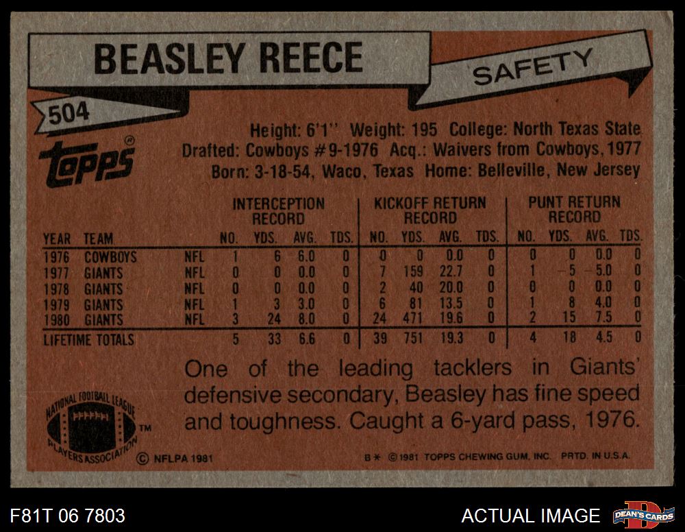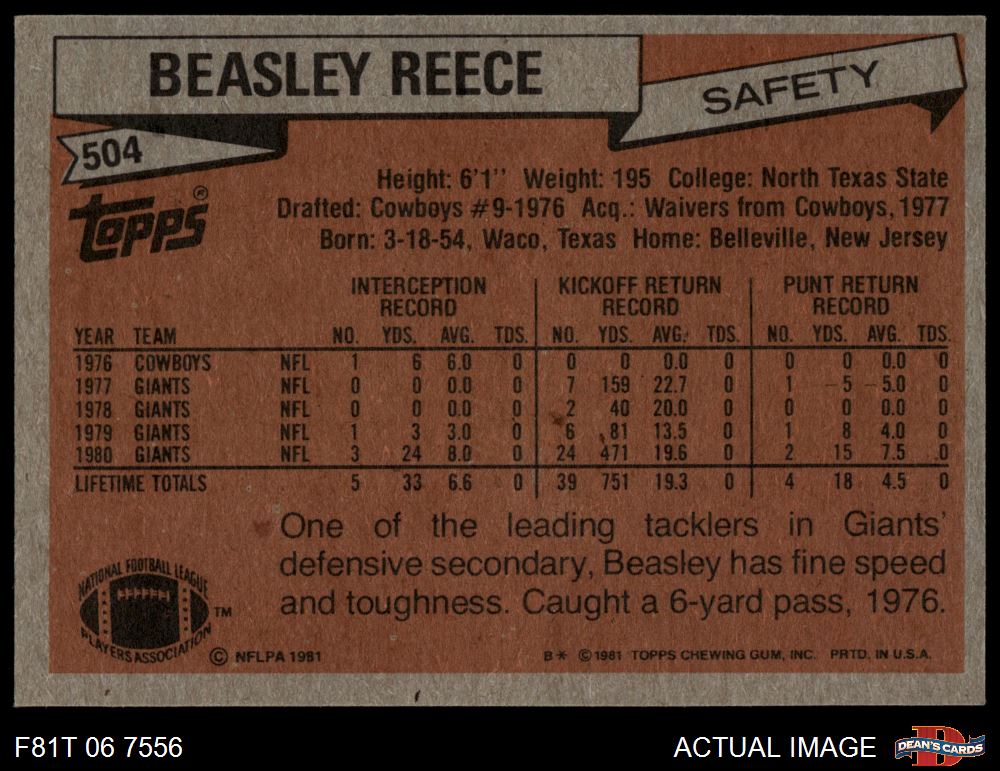 1981 Topps #504 Beasley Reece