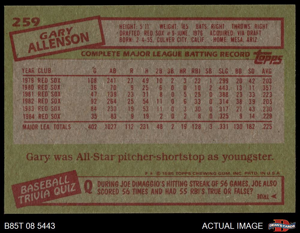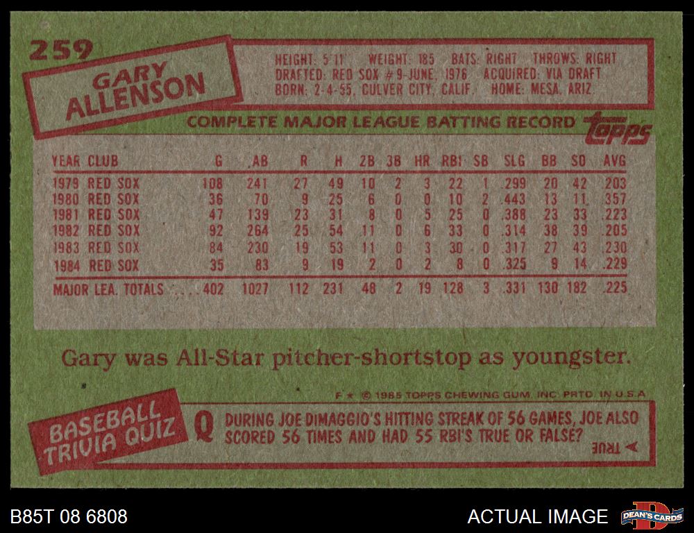 1985 Topps Baseball Cards (11,293 available)1985 Topps Red Sox (399 available)