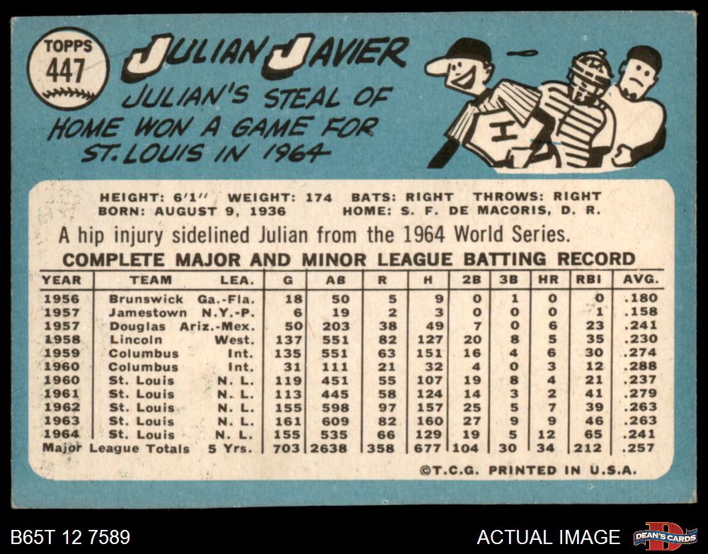 1965 Topps #447 Julian Javier 4.5 - VG/EX+