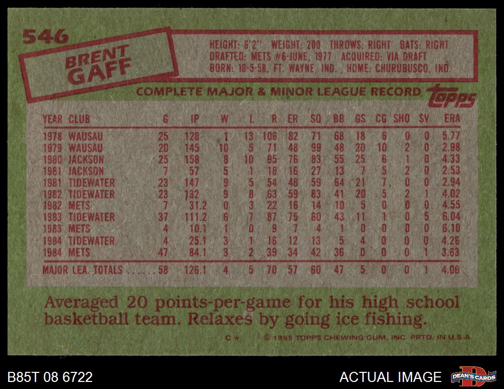 1985 Topps #546 Brent Gaff 8 - NM/MT