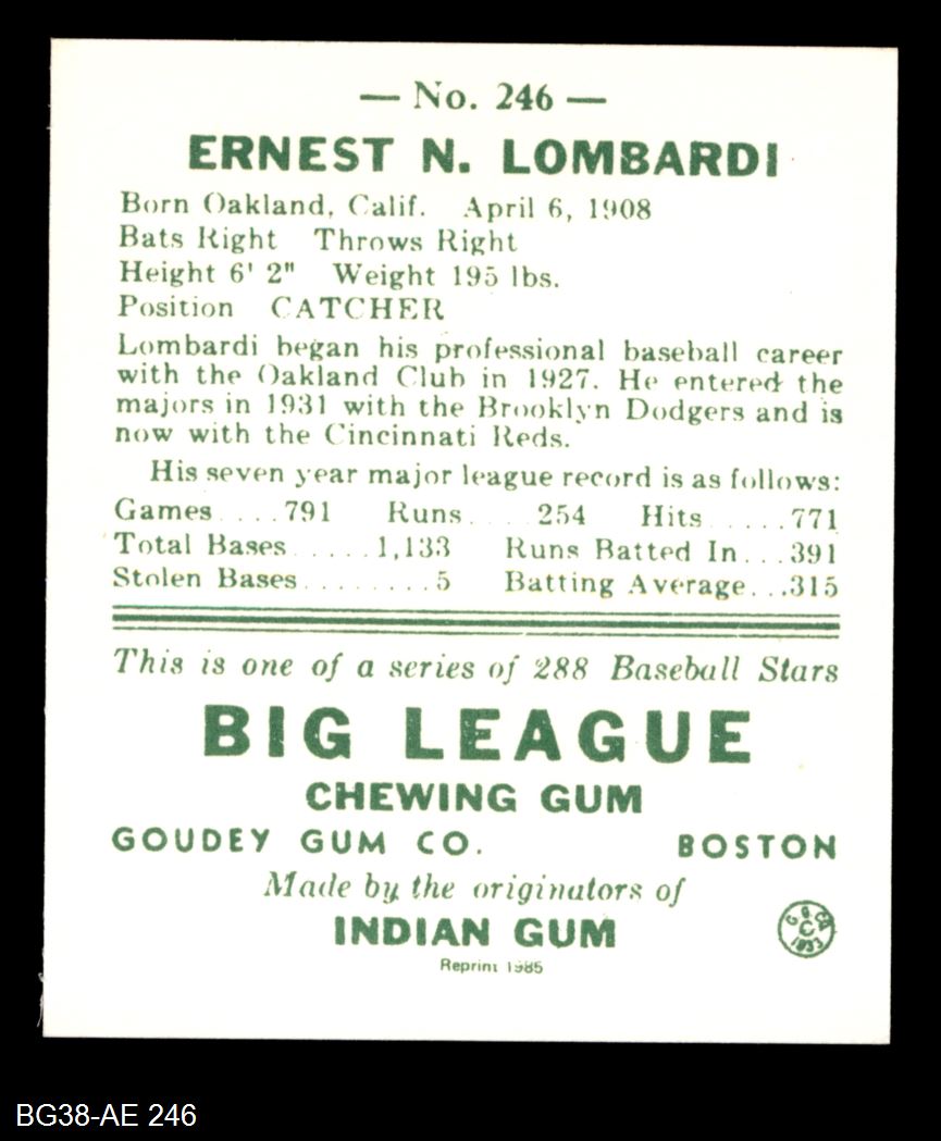 1938 Goudey Heads-Up Reprint #246 Ernie Lombardi 8 - NM/MT