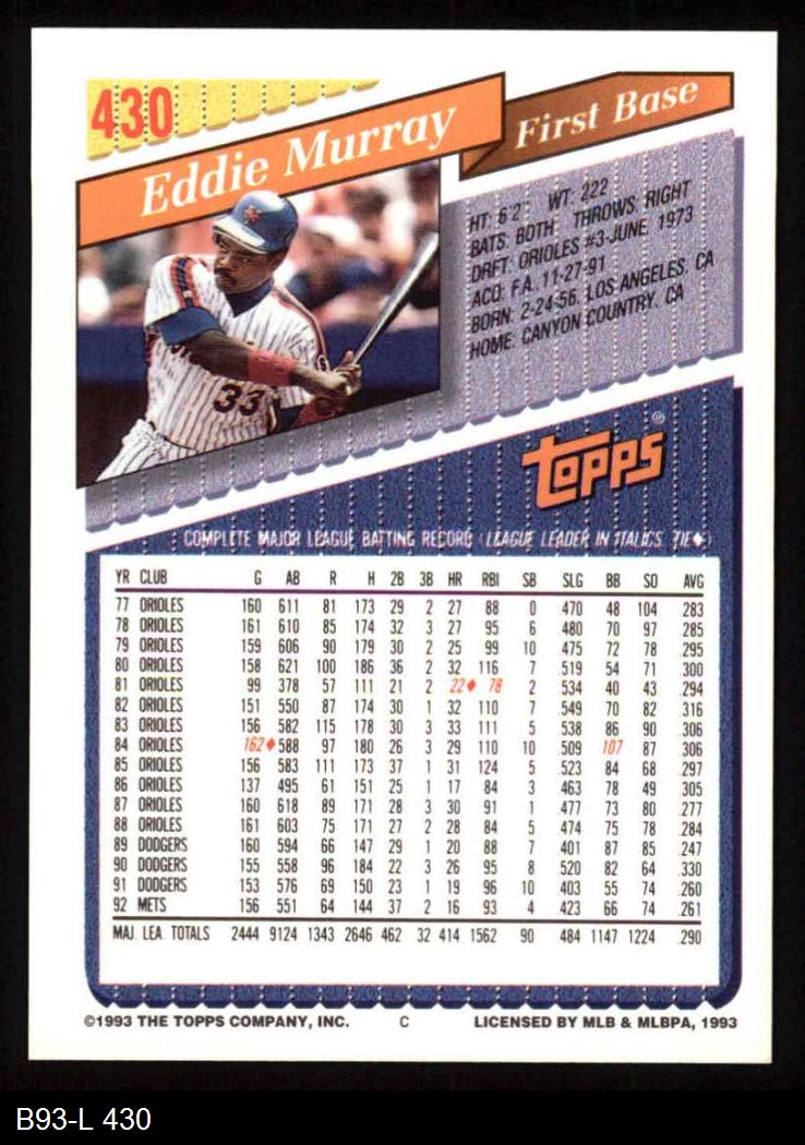 1993 Topps #430 Eddie Murray