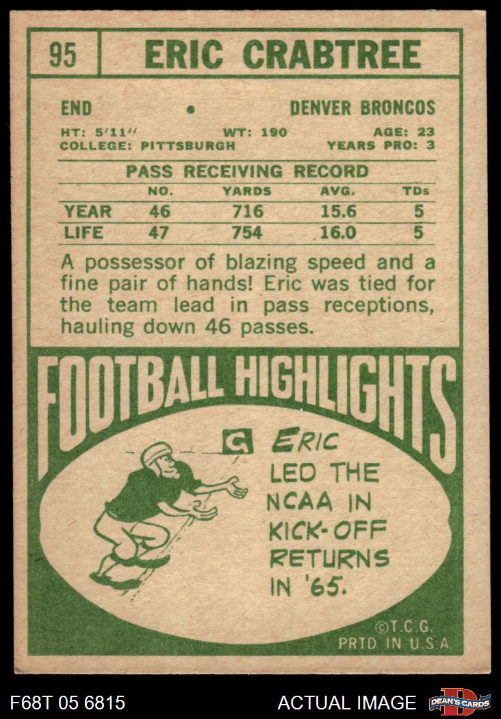 1968 Topps #95 Eric Crabtree 4 - VG/EX