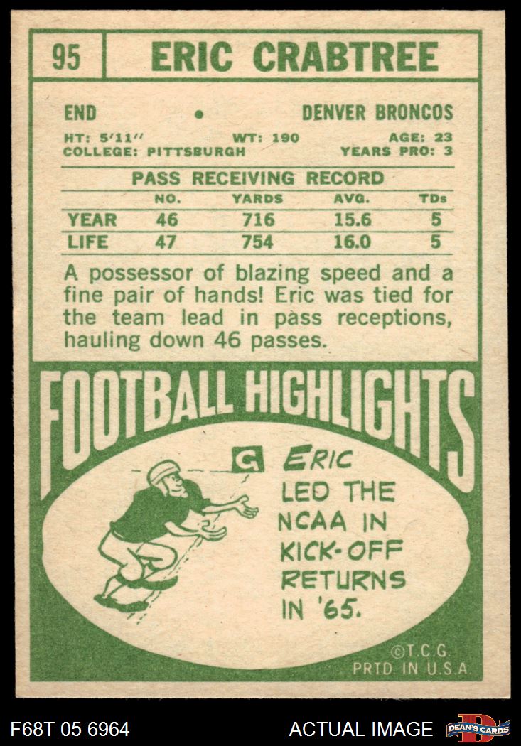 1968 Topps #95 Eric Crabtree 5 - EX