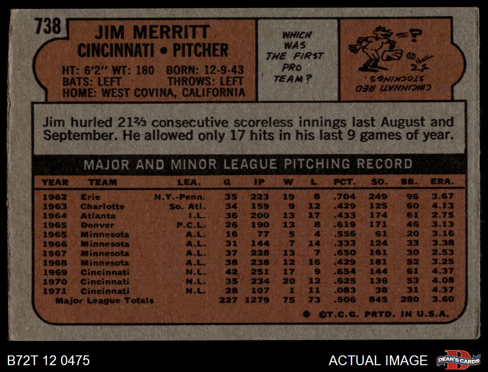 1972 Topps #738 Jim Merritt 2 - GOOD