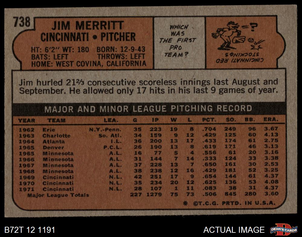 1972 Topps #738 Jim Merritt Front Thumbnail