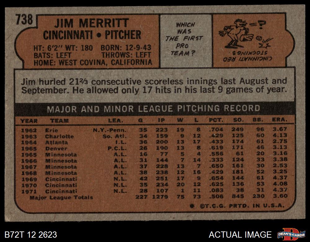 1972 Topps #738 Jim Merritt 4 - VG/EX