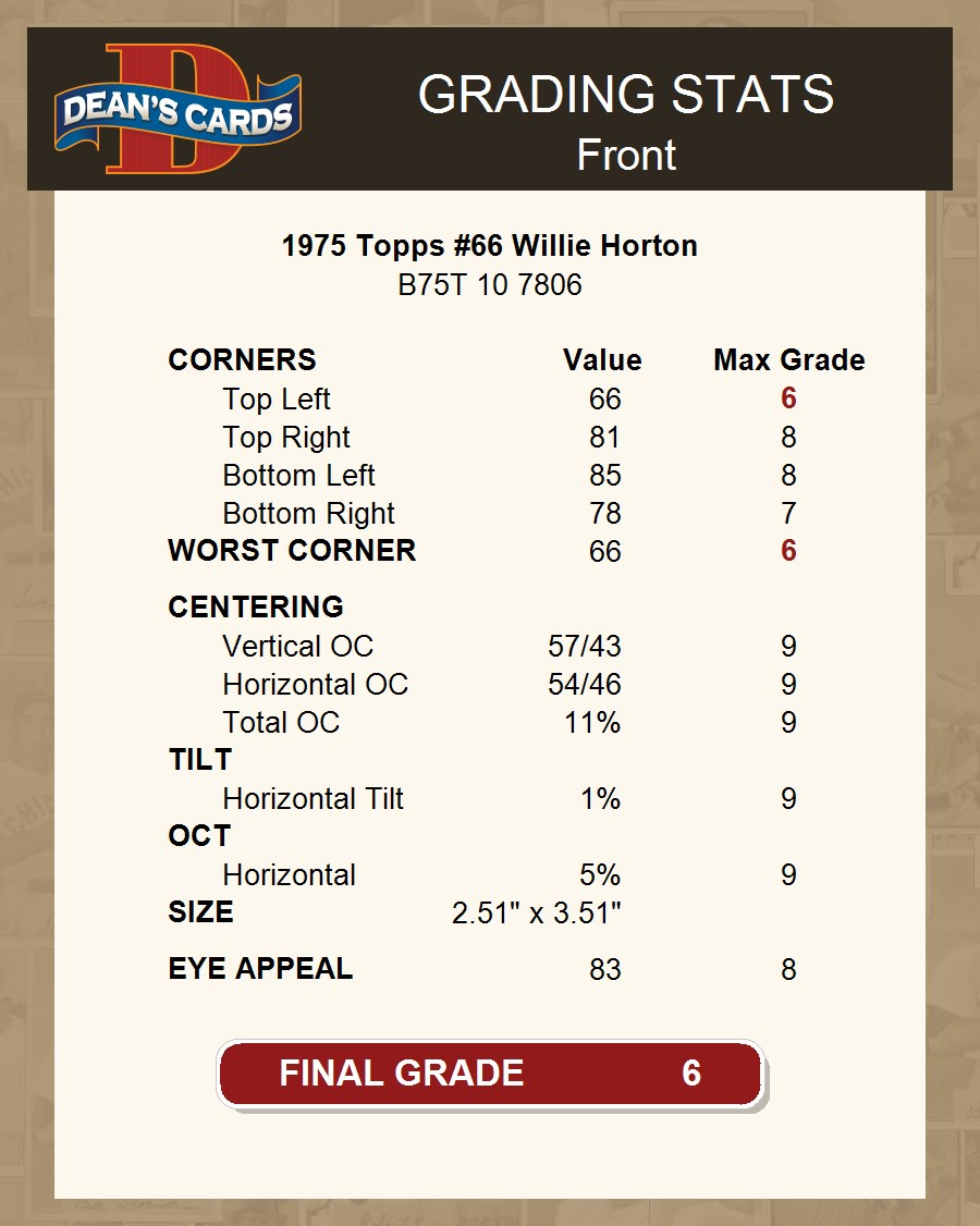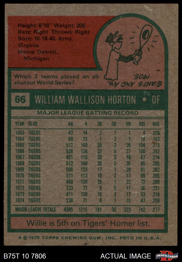 1975 Topps #66 Willie Horton 6 - EX/MT