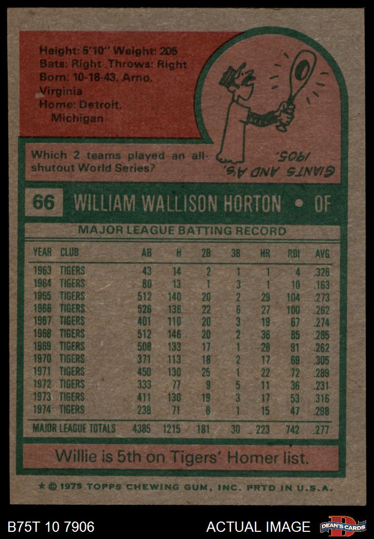 1975 Topps #66 Willie Horton 8 - NM/MT