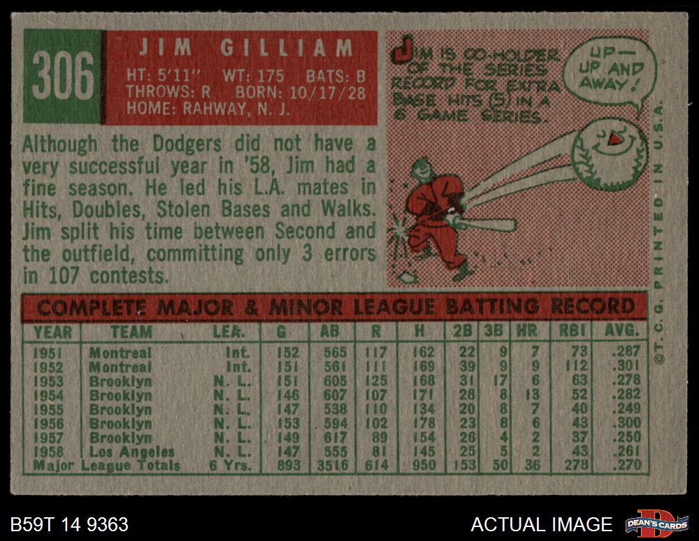 1959 Topps #306 Jim Gilliam 4.5 - VG/EX+