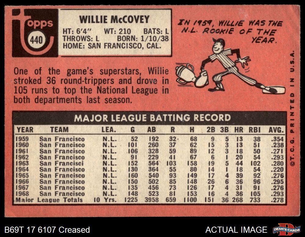 1969 Topps #440 YN Willie McCovey 2 - GOOD