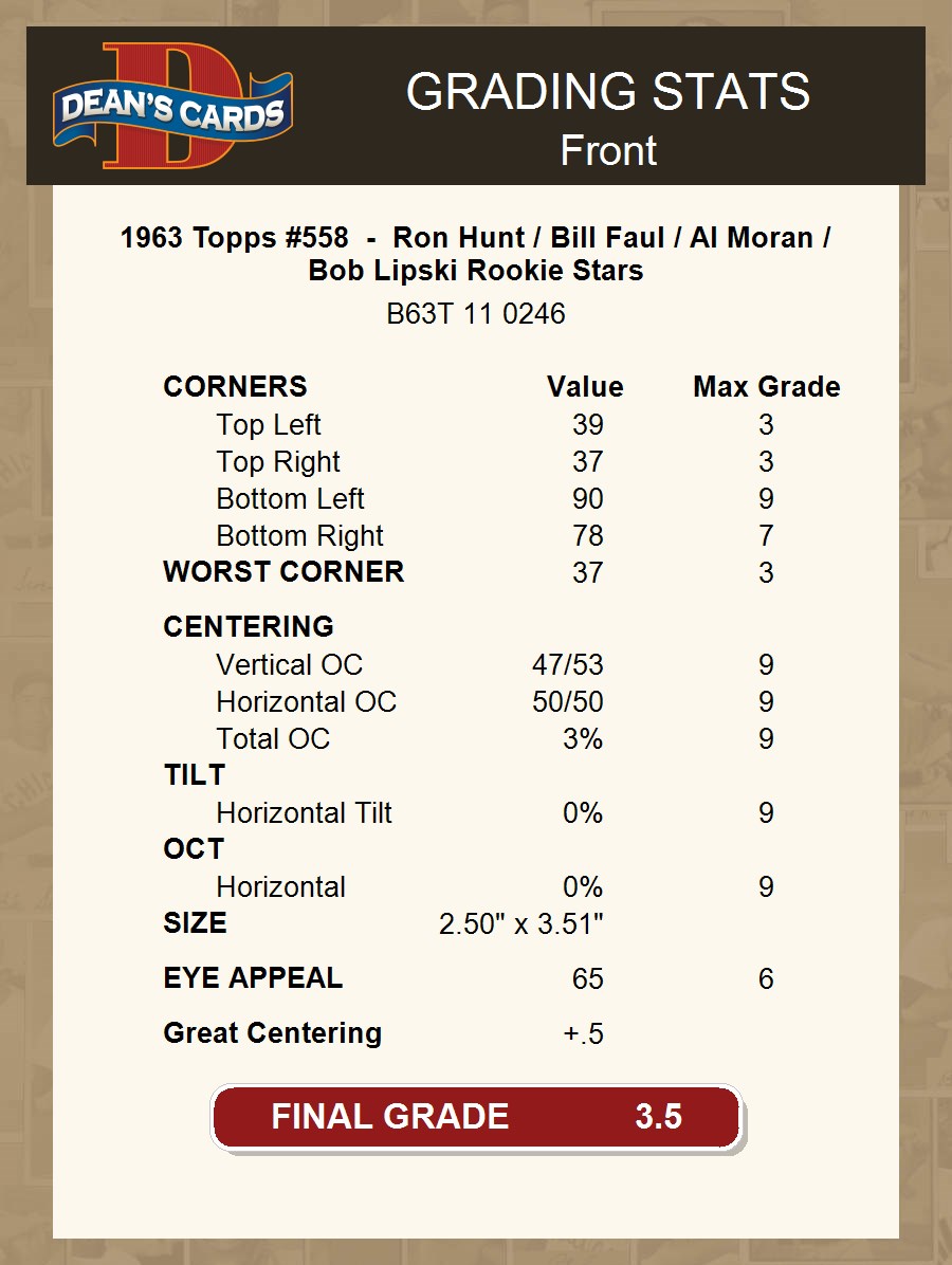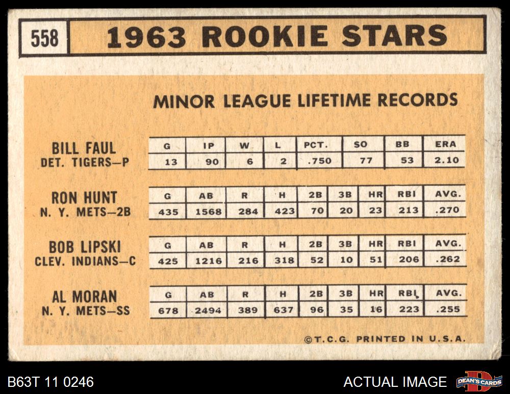 1963 Topps #558 - Ron Hunt / Bill Faul / Al Moran / Bob Lipski Rookie Stars 3.5 - VG+