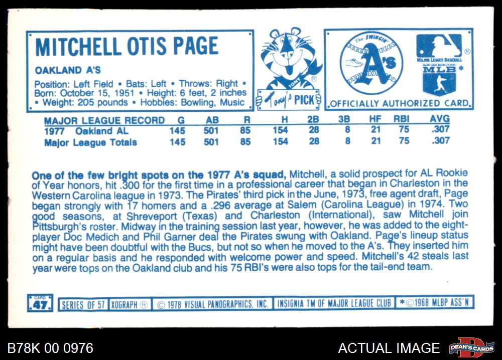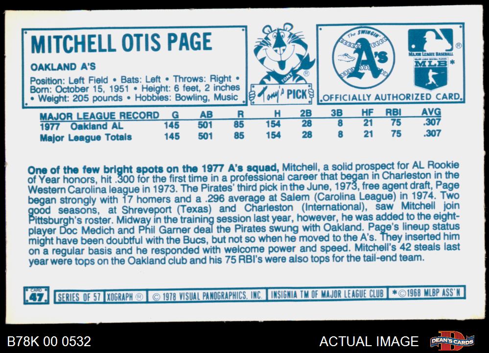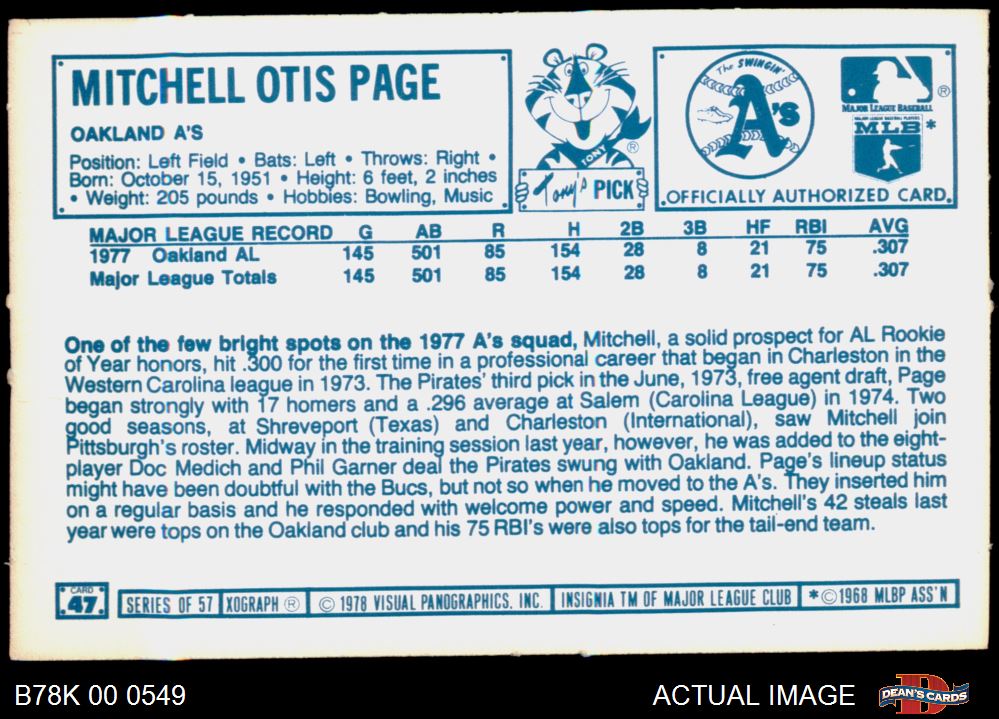 1978 Kellogg's #47 Mitchell Page