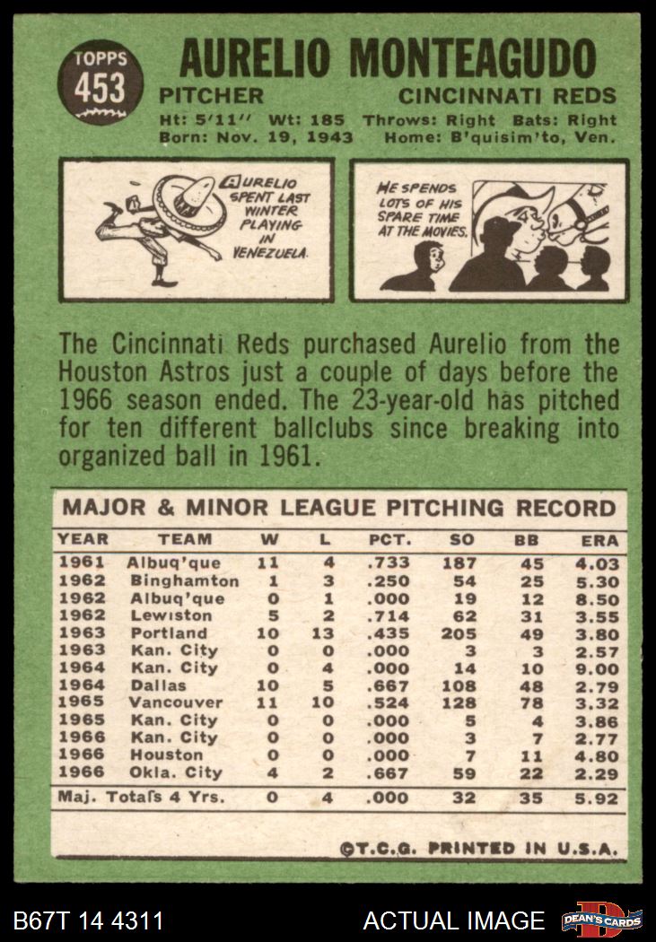 1967 Topps #453 Aurelio Monteagudo 4 - VG/EX