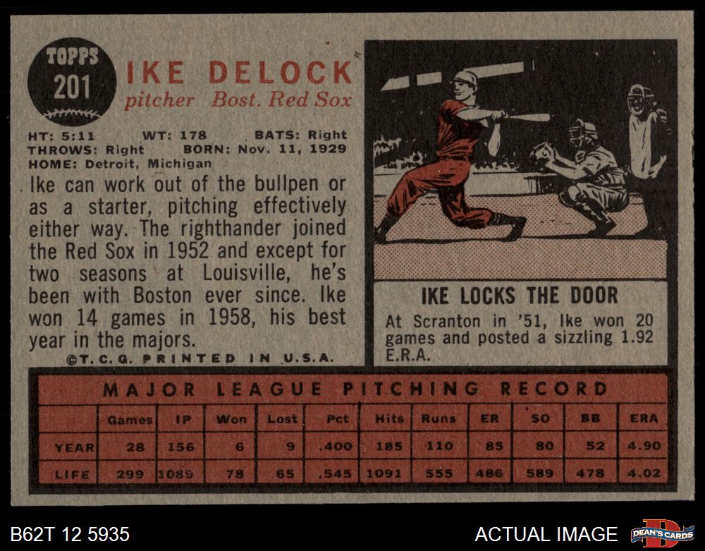 1962 Topps #201 Ike Delock 4 - VG/EX