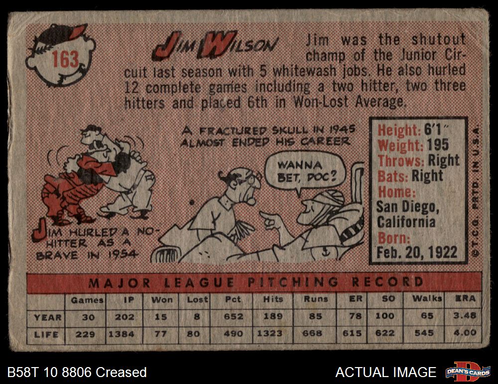 1958 Topps #163 Jim Wilson 1.5 - FAIR