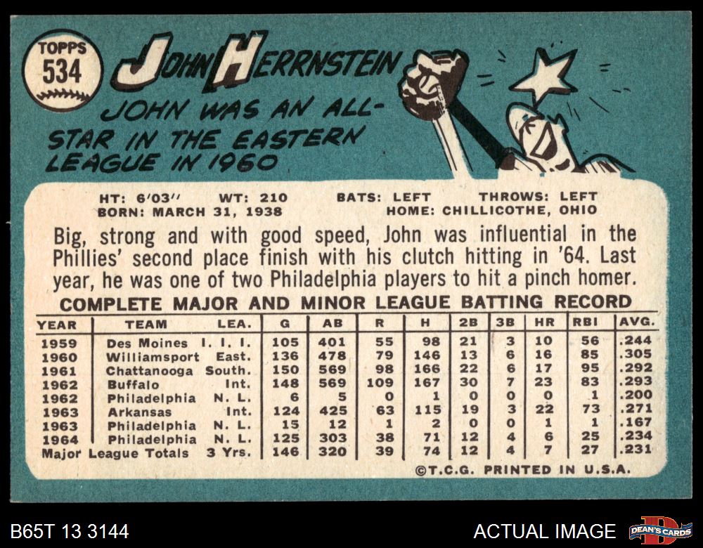 1965 Topps #534 John Herrnstein 6 - EX/MT