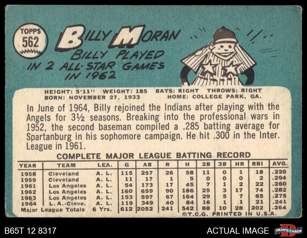 1965 Topps #562 Billy Moran 1.5 - FAIR