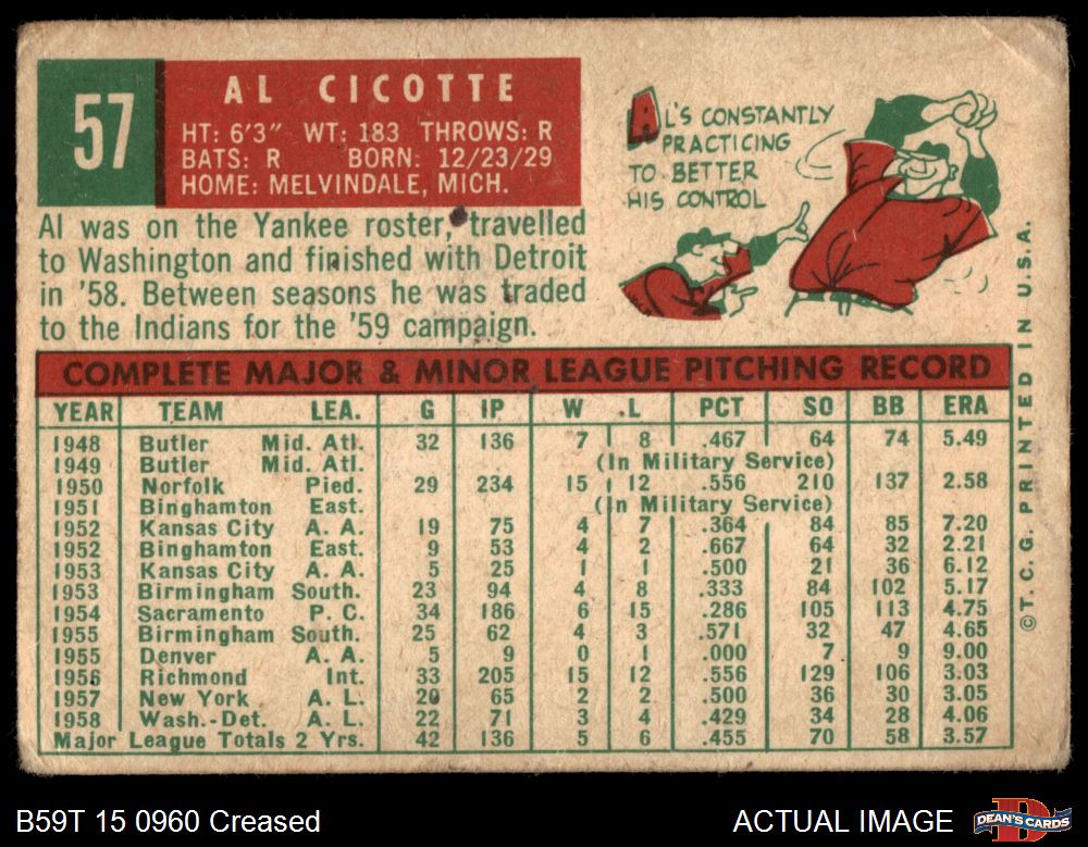 1959 Topps #57 Al Cicotte Front Thumbnail