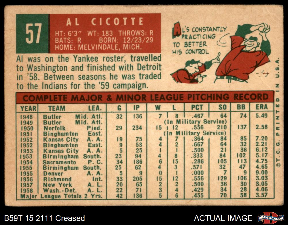 1959 Topps #57 Al Cicotte 2 - GOOD