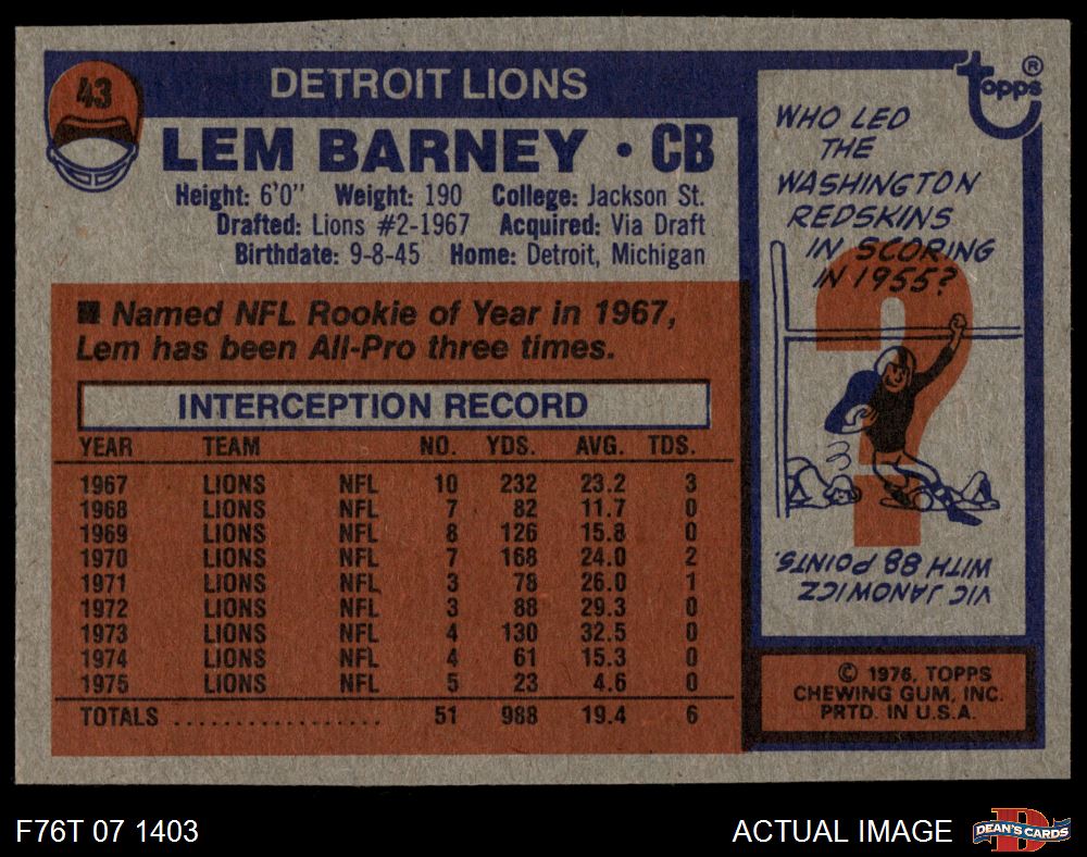 1976 Topps #43 Lem Barney 8 - NM/MT