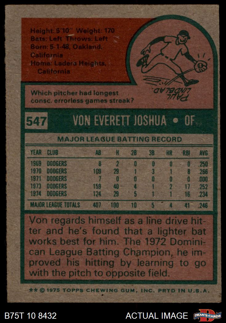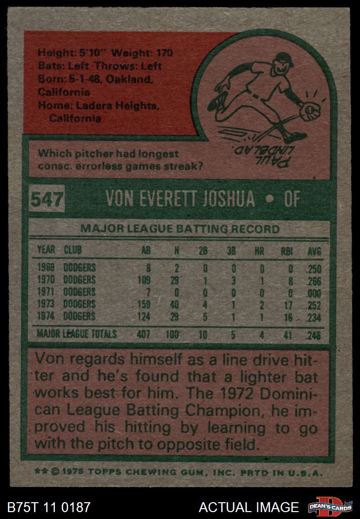1975 Topps #547 Von Joshua 4 - VG/EX